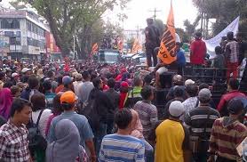 Ratusan massa dari Forum Masyarakat Sari Rejo (Formas) melakukan aksi unjuk rasa di depan Kantor DPRD Wilayah I Sumatera Utara, siang ini.